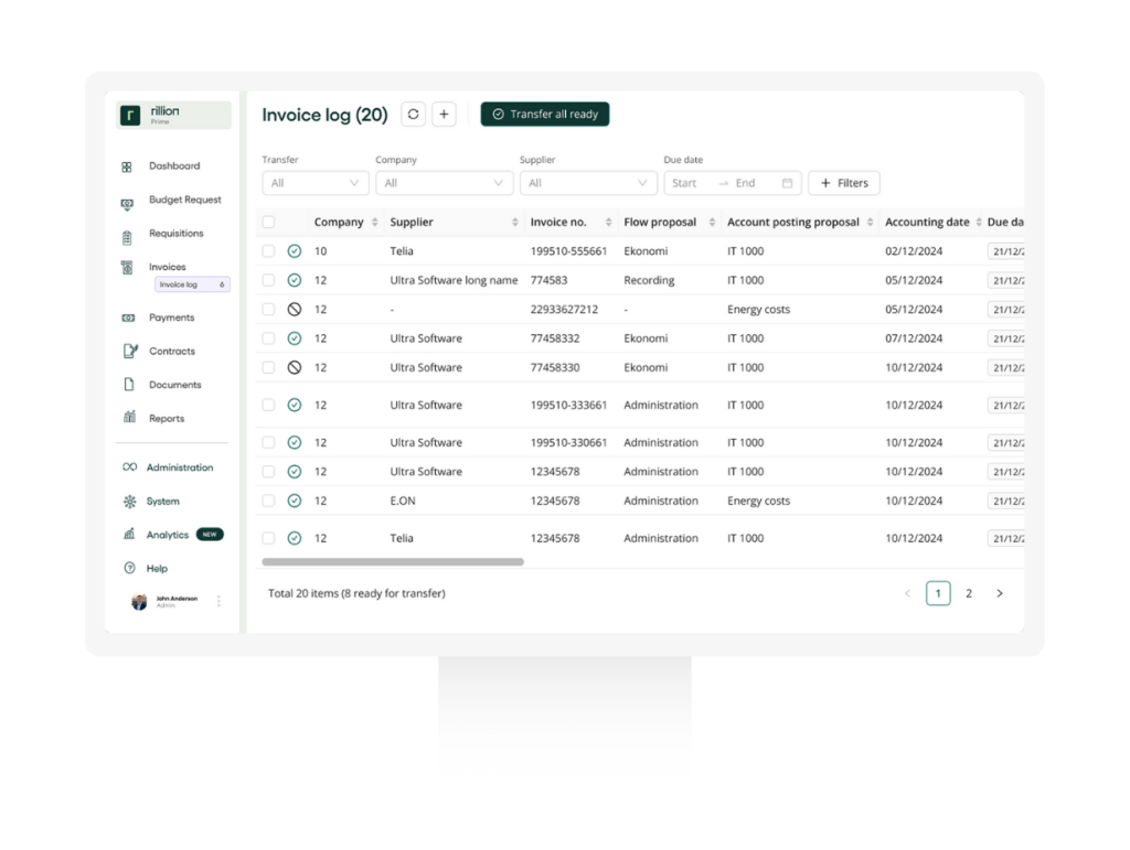 Med Rillion Prime sker processen från mottagning till betalning i ett enhetligt flöde där automationen driver arbetet framåt och där manuella insatser bara behövs när något faktiskt avviker.